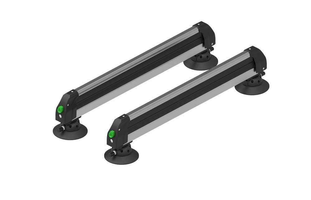 The TreeFrog Ski&Snowboard H 365 Rack gives you quick, easy to use, and secure transportation for all types of skis and snowboards, hold by 4 TreeFrog vacuum mounts. Ski&Snowboard H 365 rack is a special designed which fits perfectly on a Tesla X. The loading width is 36,5cm, and the loading capacity is 2 pairs skis, or 1 snowboard. The soft rubber arms grip the skis and snowboards securely, without scratching the surfaces. The TreeFrog Ski&Snowboard H 365 Rack comes with 2 keys.