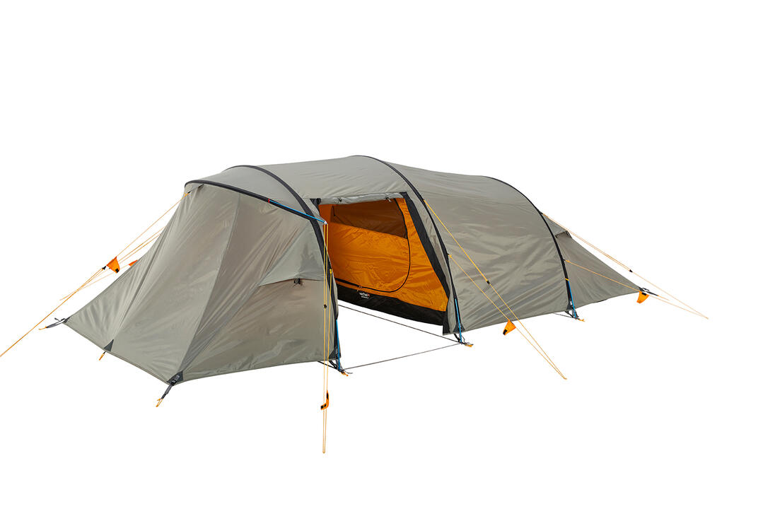 The Intrepid 5 is a tent for up to five people with two rain-protected entrances and a large vestibule. It has three external flat pole sleves. These are easy to handle, cause less wind-resistance and thus minimize wind noise. The additional sleeping cabin has an adequate length for one person. The bracket holder construction creates more space in the cabin so that the entire area of the cabin can be optimally utilized. The sleeping cabin can be installed or unhooked when the tent is set up, so you can enlarge the vestibule completely as you like. The D-shaped inner tent entrance in the upper third consists of mosquito net. Inner tent pockets and a mosquito net Gearloft provide quick access to gear. The four apex vents on the fly allow for optimal ventilation. The tent is very aerodynamic and thus very stable.